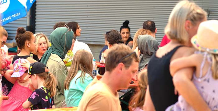 15 Flaggen, stellvertretend für die unterschiedlichen Herkunftsländer der MitarbeiterInnen, bildeten einen farbenfrohen Rahmen für das Fest, zu dem die ganze Familie geladen war.
